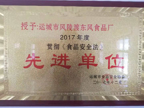 2017年度贯彻食品******法先进单位